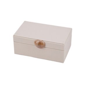Elegant Light Beige Woven Texture Leather Rectangular Jewelry Box, Natural Agate/Amber Clasp, Premium Jewelry/Watch Storage Jewelry Gift Box, Bedroom Desktop Ornament