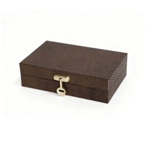 Elegant Light Gray Textured Leather Rectangular Jewelry Box, Bamboo Knot Gold Ring Clasp, Premium Jewelry/Watch Storage Jewelry Gift Box, Desktop Organizer