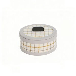 Grey and Gold-White Plaid Patchwork PU Leather Material, Luxury Round Jewelry Storage Box with Black Handle and Velvet Lining, Exquisite Jewelry Gift Box for Rings, Earrings, and Necklaces, Ideal for Holidays and Birthdays