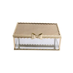 Gold Bowknot Scalloped Edge Glass Jewelry Box, Rectangular Vintage Elegant Jewelry Gift Box, Transparent Storage Jewelry Box for Vanity Decor