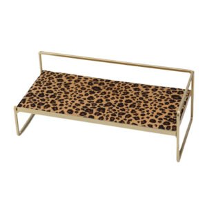 Rectangular Leopard Print Jewelry Organizer Stand with Gold Handles, Elegant Jewelry Stand Tray for Vanity, Perfume, and Makeup Display