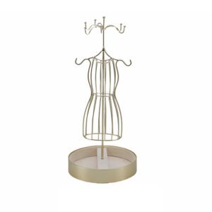 Metal Dress Form Jewelry Stand with Round Base Tray, 16x16x36cm Jewelry Organizer for Necklaces, Earrings, Bracelets, Rings – Elegant Decorative Jewelry Display