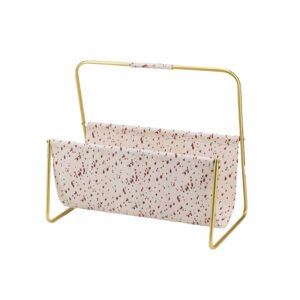 Magazine Holder with Golden Metal Frame and Terrazzo-Style Fabric, Modern Decorative Storage Rack for Books and Newspapers