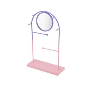 Pink Purple Gradient Jewelry Organizer Stand with Mirror, Metal Jewelry Holder Rack for Necklaces, Bracelets, Earrings, Decorative Jewelry Display, 20x8x33cm