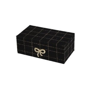 Luxury Black Velvet Plaid Jewelry Box – Modern Rectangular Keepsake Organizer with Sparkling Rhinestone Bow Clasp, Premium Storage for Rings, Necklaces & Earrings, Ideal Jewelry Gift Box for Women