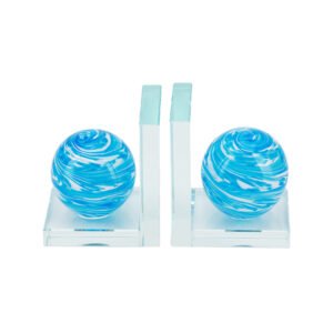 Blue and White Swirl Glass Bookend Set, Modern Ornament for Home or Office, Luxury Home Decor Accent and Gift Idea