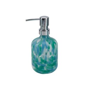 Blue and Green Swirl Glass Soap Dispenser with Chrome Pump, Decorative Liquid Hand Soap/Lotion Dispenser for Bathroom Kitchen