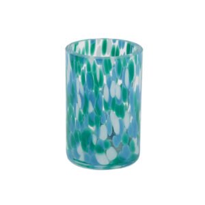 Blue Green Patterned Glass Tumbler, Decorative Cup for Bathroom Vanity, Toothbrush Holder