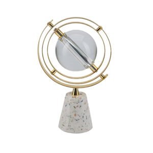 Modern Light Luxury Gold Stand Clear Sphere Globe Style Desktop Ornament, Terrazzo Base Home Decor Luxury Creative Art Sculpture