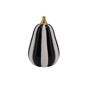 Modern Luxury Black and White Striped Elongated Pumpkin Ornament with Metallic Gold Stem – High-End Home Decor, Sophisticated Tabletop Decorative Ornaments, Chic Contemporary Art Piece for Fall & Year-Round Display