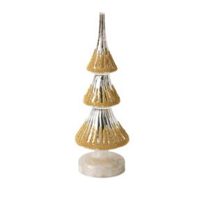 small Gold Beaded Silver Layered Christmas Tree Ornament, Mercury Glass Craftsmanship, Round Marble-Look Base, Luxurious Festive Home Decor, Winter Tabletop Art Piece, Elevate Holiday Ambiance