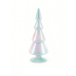 small Luxury Iridescent Aurora Glass Christmas Tree Ornament – Modern Minimalist Artistic Ornament, Aesthetic Mother-of-Pearl Luster Home Decor, Premium Handcrafted Feel Glass Ornaments, High-End Festive Tabletop Display