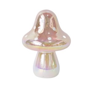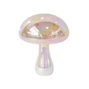 Creative Iridescent Polka Dot Glass Mushroom Ornament – Modern Art Ornaments with White Polka Dots, Dreamy Style Home Decor Glass Sculpture, Ideal Forest-Themed and Desktop Decorative Gift