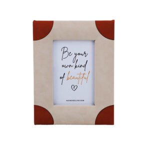 Vintage Leather Corner 4×6 Inch Desktop Photo Frame, Beige/Khaki Leather Patchwork Frame Photo, Minimalist Home Decor Memorial Picture Display