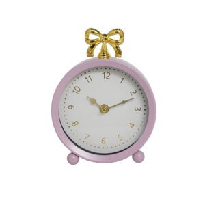 Vintage European Mauve Pink Round Alarm Clock – Exquisite Gold Bow Topper Clocks, Modern Minimalist Table Clock, Premium Craftsmanship Desk Table Clocks for Bedroom and Study Aesthetic Decor, Silent Movement, Ideal Holiday and Home Gift