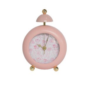 Vintage European Pink Round Alarm Clock – Artistic Floral Dial Clocks, Exquisite Gold Feet Table Clock, Modern Aesthetic Desk Table Clocks for Bedroom and Study Decor, Silent Movement, Ideal Home Decor Gift