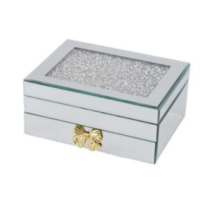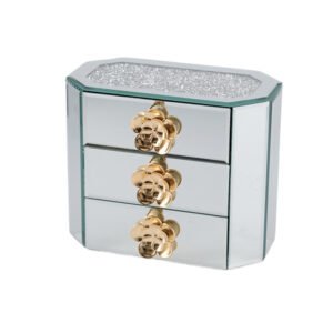 glass jewelry box with glitter top(golden flower-shaped handles)