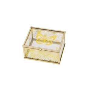 Glass Jewelry Box with Golden Butterfly Pattern, Small Jewelry Box for Girls, Clear Display Box Jewelry Boxes Organizer