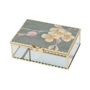 Glass Jewelry Box with Floral Lid and Gold Bow, Elegant Decorative Box Jewelry Boxes Organizer for Rings, Earrings, Necklaces – Jewelry Box for Women, Gift for Her
