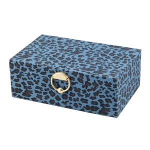 large-sized Blue Leopard Print Jewelry Box with Gold Ring Handle, Rectangular Small Jewelry Storage Case, Decorative Box Jewelry Boxes for Girls and Women