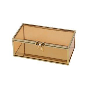large-sized Brown Glass Jewelry Box with Transparent Panels and Ribbon Lock, Rectangular Jewelry Box Organizer, Elegant Box for Rings, Earrings, and Girls Jewelry