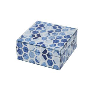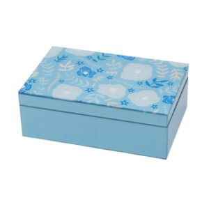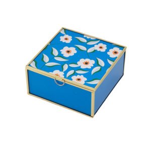 large-sized Blue Floral Glass Jewelry Box with Lid, Elegant Jewelry Gift Box for Rings, Earrings and Accessories, Luxury Jewelry Box Packaging for Women