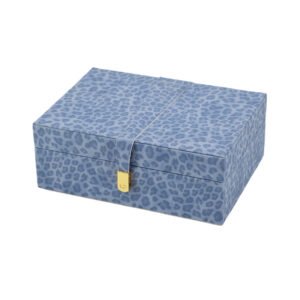 large-sized Blue Leopard Print Jewelry Box with Gold Lock, Fabric Covered Box Jewelry Boxes for Rings, Earrings, and Necklaces, Stylish Small Jewelry Box for Girls or Women