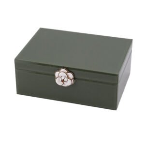 large-sized Dark Green Jewelry Box with White Camellia Lock, Rectangular Storage Box for Rings, Earrings, Necklaces