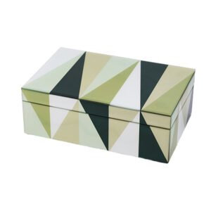 large-sized Geometric Jewelry Box with Green and White Pattern, Decorative Storage Organizer Box Jewelry Boxes for Women