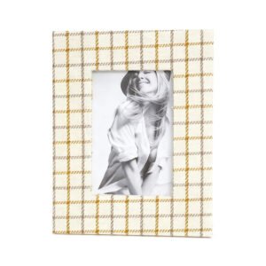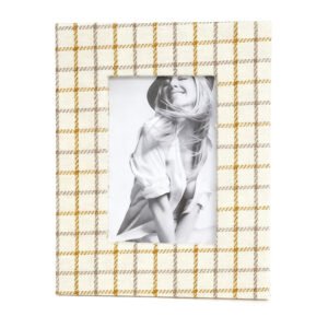 Beige Plaid Fabric Photo Frame, 5×7 Inch Rustic Tabletop Display Stand, Classic Tartan Pattern Photo Frame and Home Accent, PU Photo Frame Holiday Gift