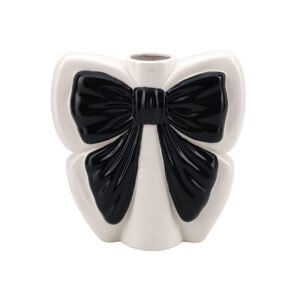 large-sized Modern Cute Black and White Bowknot Shaped Ceramic Vase, Small Caliber Flower Vase, Delicate Desktop Decorative Vase, Girly Home Decor Art Piece