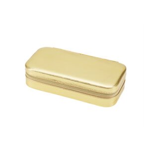 Rectangular Gold Leather Jewelry Box with Zipper, Slim Small Jewelry Box Organizer for Girls, Travel Box Jewelry Boxes for Rings and Necklaces