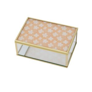 Rectangular Transparent Glass Jewelry Box with Gold Frame, Patterned Base Jewelry Storage Box, Compact Girls Jewelry Box