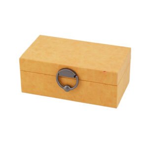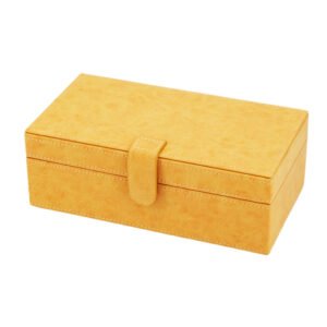 Yellow Faux Leather Jewelry Box with Metal Ring Clasp, Organizer Box for Girls’ Accessories
