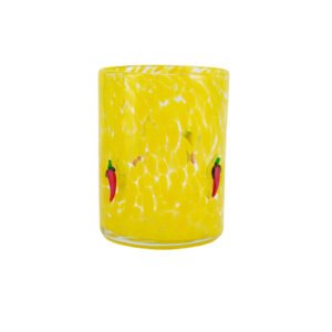 yellow Glass Pen Holder with small chili Pattern, Stylish Desk Organizer Cup for Office Supplies, Home or Study Table