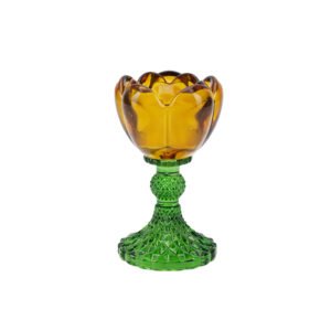 Yellow and Green Gradient Glass Candle Holder, Flower – Shaped Candle Stick Holder for Home Decor