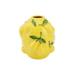 Yellow Moroccan – Style Ceramic Vase with Wooden – Look Neck and Handle, 11.5×11.5×31.7cm Decorative Vase for Home