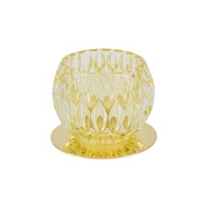 Yellow Textured Glass Candle Holder with Gold Base, Honeycomb – Shaped Glass Candle Stick Holder for Home Decor