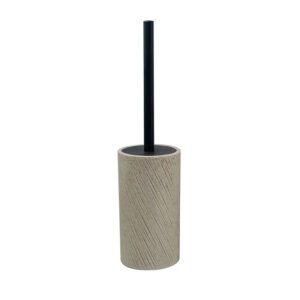 Modern Minimalist Beige Diagonal Ribbed Toilet Brush Set, Premium Resin Base, Discreet Storage Cleaning Brush, for Master/Guest Bathroom