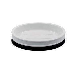 Modern Minimalist Black & White Contrast Round Soap Dish, Smooth White Drainage Bar Soap Holder, High-End Bathroom Countertop Handcrafted Soap/Sponge Tray