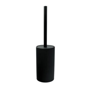 Modern Minimalist Matte Pure Black Cylindrical Toilet Brush and Holder Set, Freestanding Bathroom Storage Caddy, Premium Anti-Splash/Rust-Proof Cleaning Tool