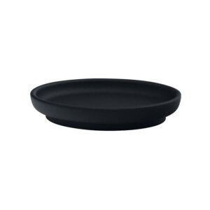 Modern Minimalist Matte Pure Black Round Soap Dish, No-Hole Draining Design Premium Bar Soap Holder, Bathroom/Kitchen Countertop Handcrafted Soap/Sponge Tray