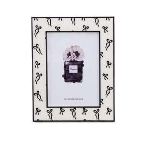 large-sized Bow-Patterned Decorative Picture Frame, Black & White 5×7 Photo Frame for Home Decor, Stylish Frame for Desktop & Wall Display