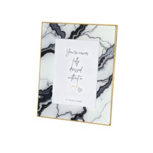 large-sized Modern Abstract Black & White Marble Texture Photo Frame -5×7-Inch Minimalist Art Frame, Nordic Luxury Gold Edged Photo Frame, Creative Tabletop Display, Elegant Photo Frame and Home Aesthetic Decor Gift