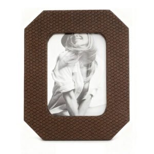 large-sized European Vintage Dark Brown Woven Texture Octagonal Decorative Photo Frame, High-End Artistic photo frame for Tabletop Display, Classic Geometric photo frame and Home Decor Accessory, Luxury PU photo frame for Portraits and Art Collection Gifting