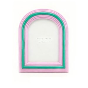 Large-sized Modern Art Color-Block Arched Photo Frame – Creative Purple & Green Tiered Photo Frame, Vintage European 5×7 Inch Photo Frame and Stylish Home Display, Multi-Layer 3D Relief Design, Pop-Art Aesthetic Desktop Decor, Ideal Holiday & Creative Gift