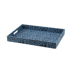 Blue Leopard Print Decorative Tray, Modern Rectangular Fabric Wrapped Tray with Textured Pattern, Stylish Jewelry Tray and Bathtub Tray for Coffee Table, Bathroom or Vanity