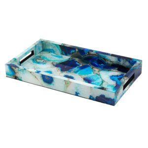 Blue Agate Pattern Decorative Tray with Gloss Finish, Modern Serving Tray for Drinks and Snacks, Elegant Jewelry Tray for Vanity or Coffee Table