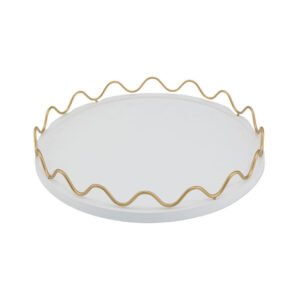 Minimalist Matte White with Gold Wavy Rim Decorative Tray, Modern Round Tabletop Organizer, Exquisite Multifunctional Display Tray for Coffee Table, Perfume Storage, and Vanity, Ideal Home Decor and Holiday Gift