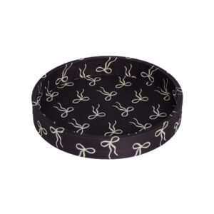 Modern Artistic Black Round Tray – Elegant Ribbon Bow Printed Desktop Organizer, Nordic Luxury Decorative Trays for Living Room, Vanity & Entryway, Sophisticated Home Aesthetic Display